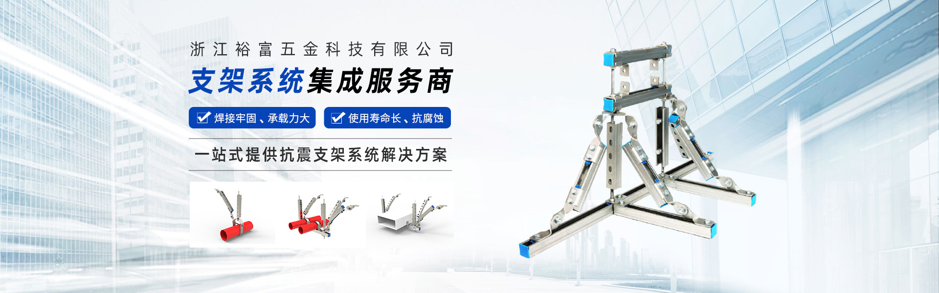 浙江裕富五金科技有限公司位于美麗的杭州臨安青山湖畔,注冊資金5000萬人民幣。是一家集研發(fā)、設(shè)計、制造、銷售、安裝、技術(shù)服務于一體的,專業(yè)從事抗震支吊架、管廊支吊架、綜合承重支吊架等,多功能、多元化的現(xiàn)代新興科技企業(yè)。 公司技術(shù)力量雄厚、設(shè)備齊全、工藝先進、管理體系高效完善,在注重產(chǎn)品設(shè)計、選材、結(jié)構(gòu)工藝等細節(jié)基礎(chǔ)上,嚴格按照GB/T37267-2018、GB/T9978.1-2008等國家標準進行生產(chǎn)和管理,立足本土并扎根施工現(xiàn)場,多次調(diào)研測試并持續(xù)改進,產(chǎn)品通過了國家建筑工程質(zhì)量監(jiān)督檢驗中心的檢測,打造了“裕富欣”品牌。